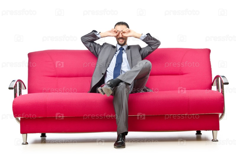 Молодой бизнесмен, сидящий в диване