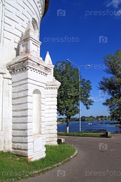 Фрагмент белого здания на набережной улице