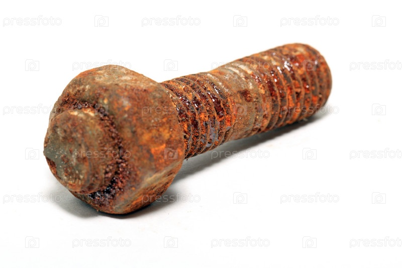 Старый ржавый болт на белом фоне