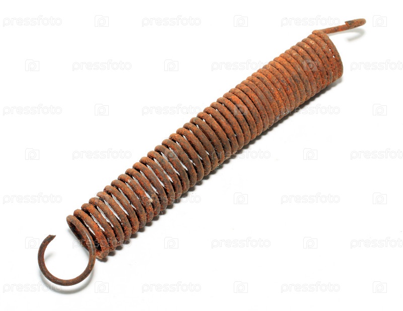 Старая ржавая пружина на белом фоне