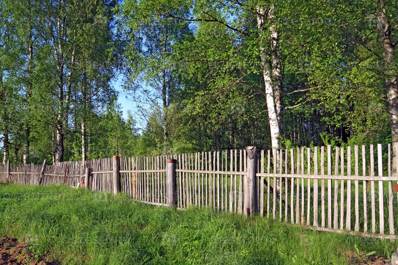 Старый деревянный забор среди травы