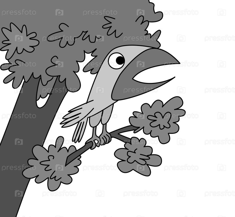Птица на ветке на белом фоне