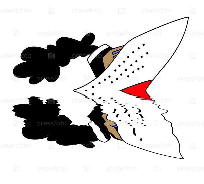 Тонущий пароход на белом фоне