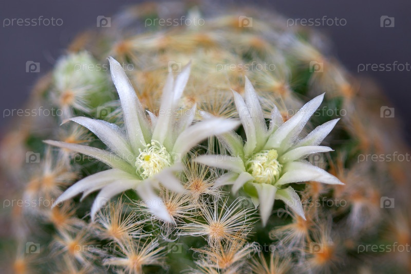 Кактус с цветами на темном фоне (Маммиллярия)