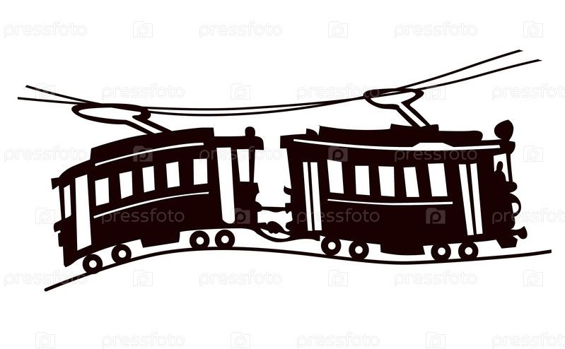 Черный силуэт трамвая на белом фоне