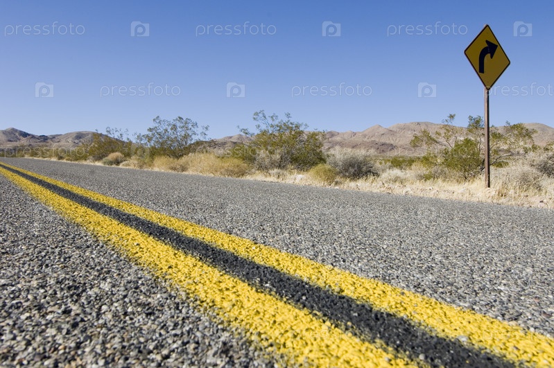 Дорожный знак на пустынном шоссе в Национальном парке Долина смерти в США