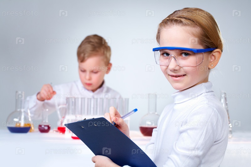Дети на уроке химии