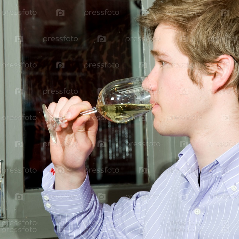 Молодой человек пьет белое вино