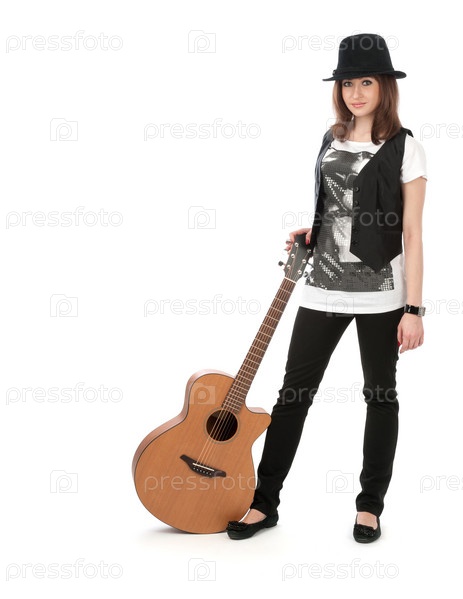 Девушка с гитарой на белом фоне