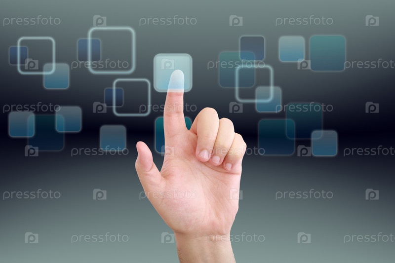 Рука нажимает кнопку сенсорного экрана