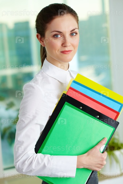 Бизнес-леди с папками в офисе