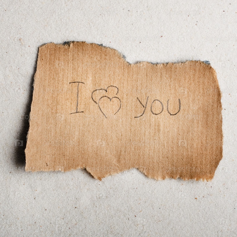 Слова "я тебя люблю" на бумаге на песке