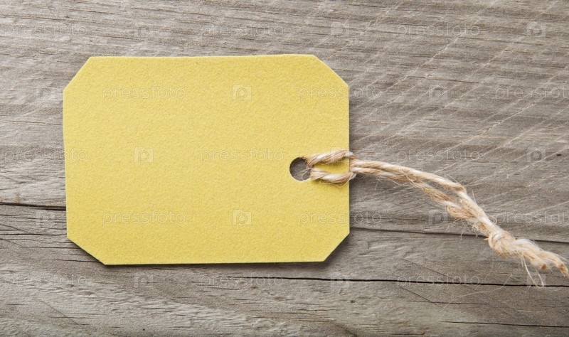 Желтая бирка на деревянной доске