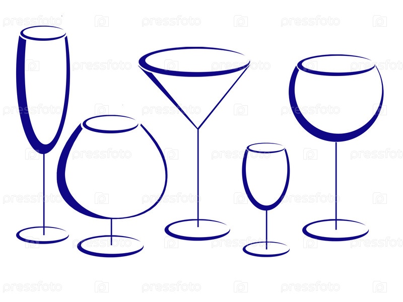 Ассортимент бокалов на белом фоне