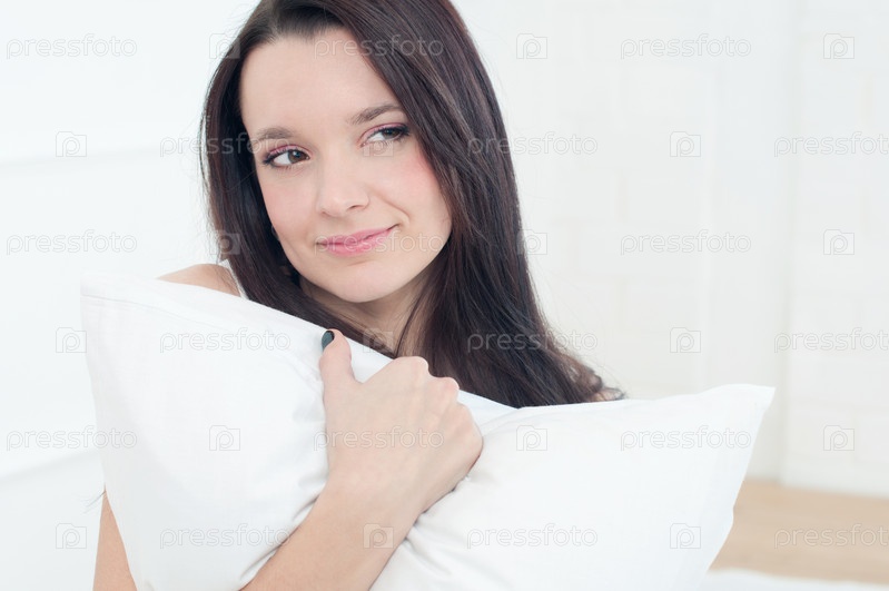 Темноволосая девушка с подушкой