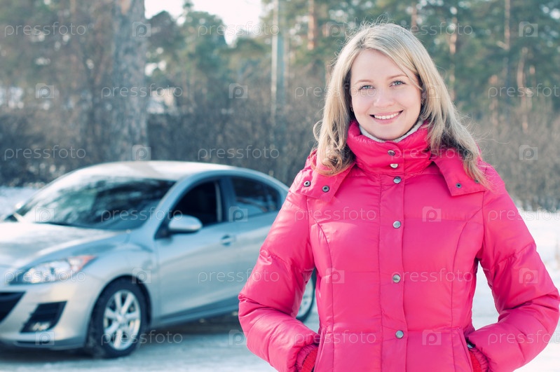 Светловолосая девушка, стоящая на фоне своего автомобиля