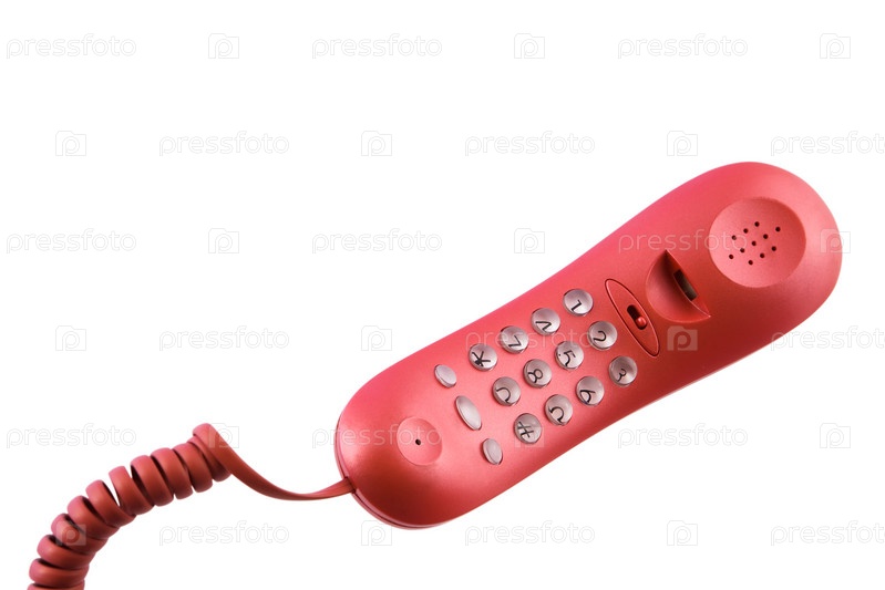 Телефон с красной кнопкой, изолированный на белом