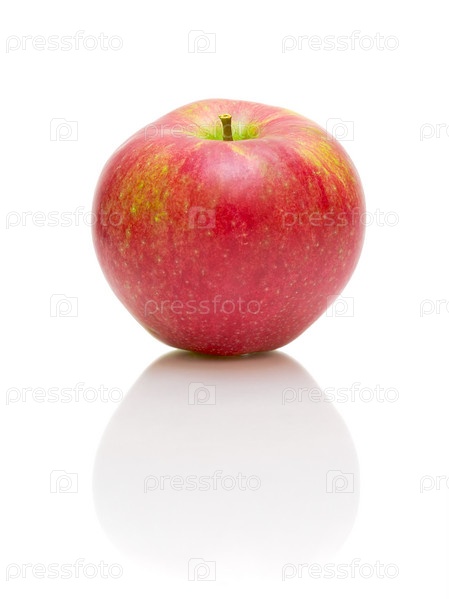 Большое спелое красное яблоко на белом фоне
