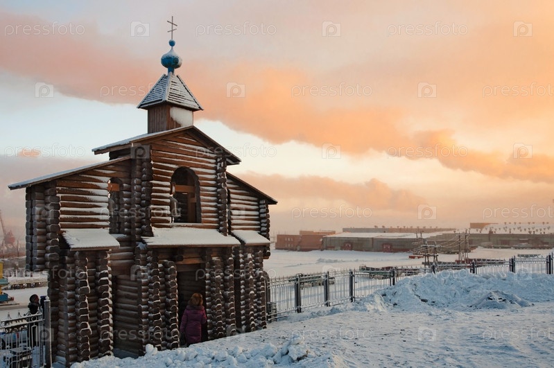 Бревенчатая звонница. Мемориал жертвам политческих репрессий. Россия. Норильск