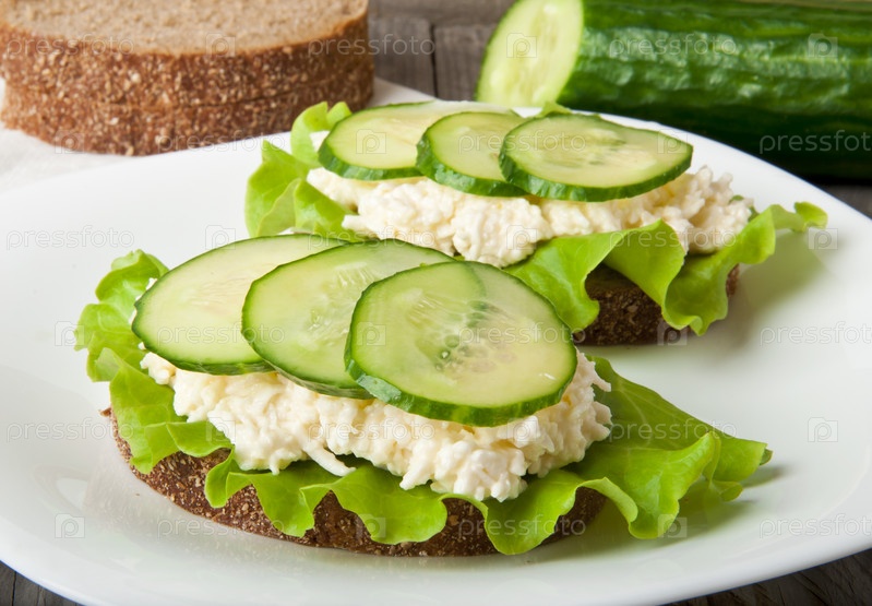 Бутерброды с огурцом, яйцом и сыром на завтрак