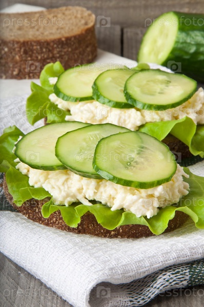 Бутерброды с огурцом, яйцом и сыром на завтрак