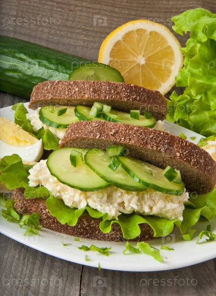Бутерброды с огурцом, яйцом и сыром на завтрак