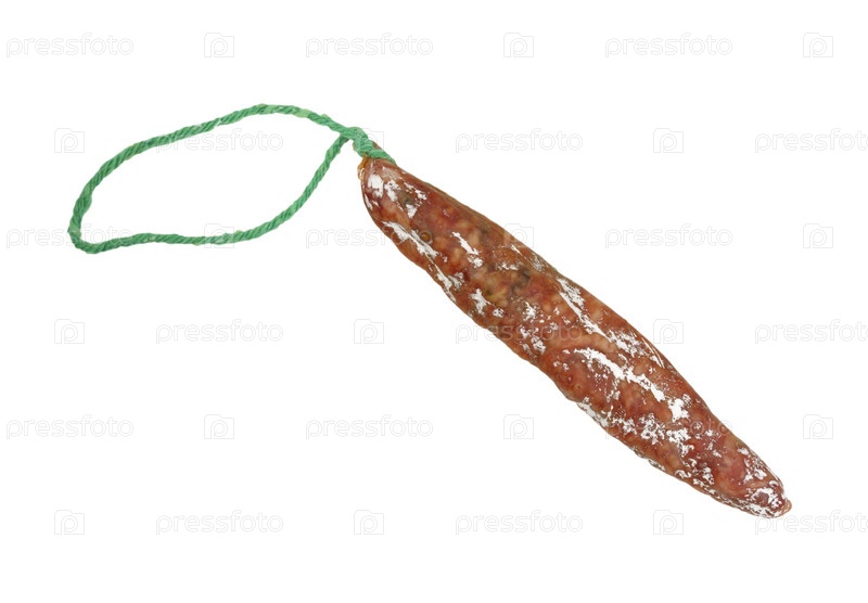 Сухая колбаска, изолирована на белом фоне