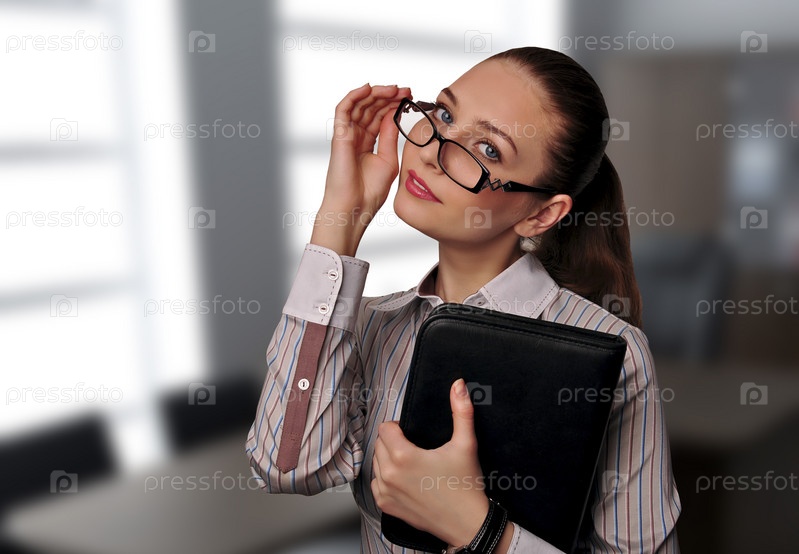 Деловая женщина в очках с документами в офисе
