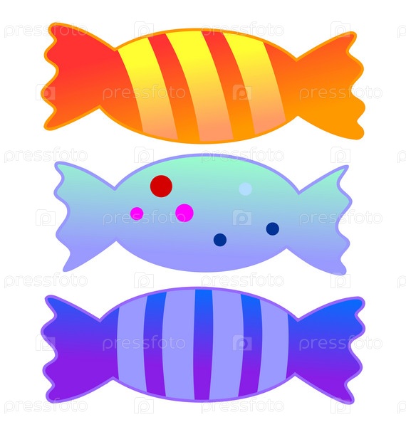 Три конфеты в ярких обертках на белом фоне