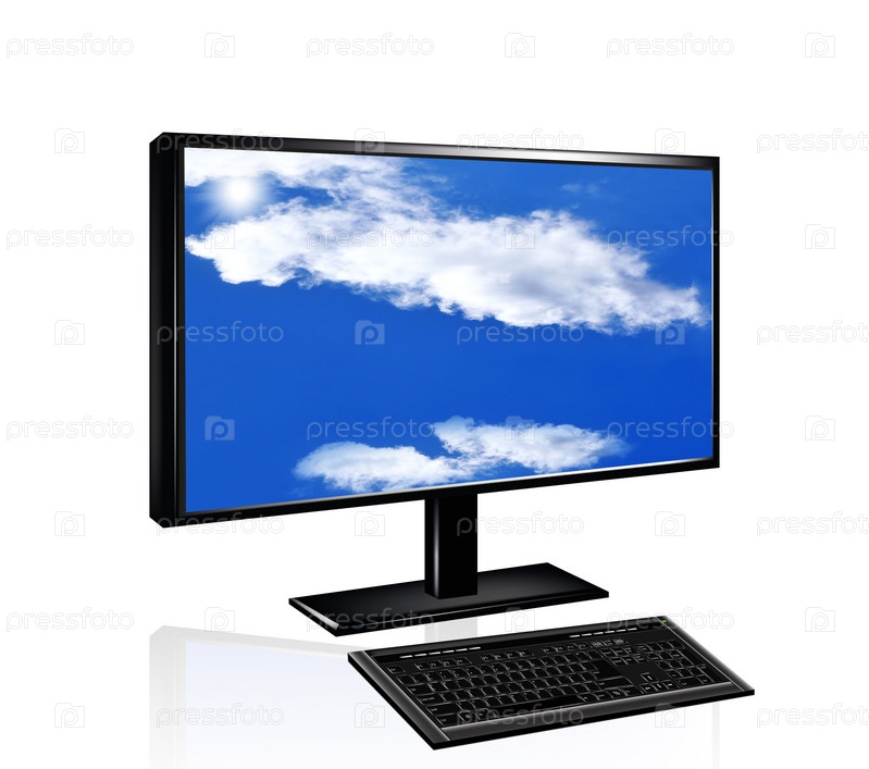 Компьютер с клавиатурой на белом фоне