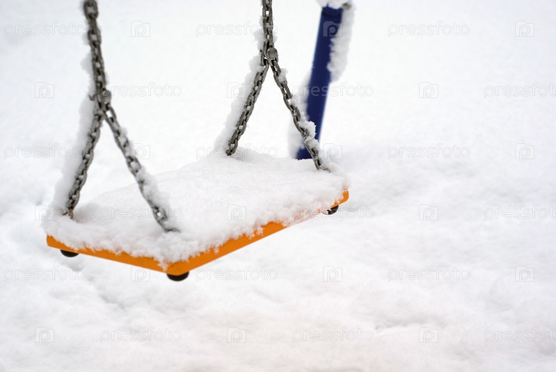 Качели под снегом зимой