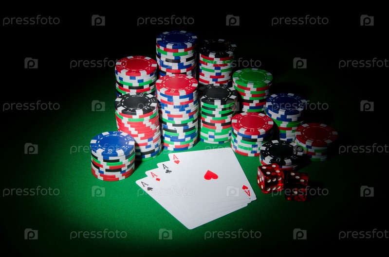 Игральные фишки и карты на зеленом сукне