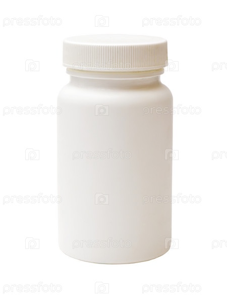 Белый пластиковый флакон для лекарств, изолированный на белом фоне