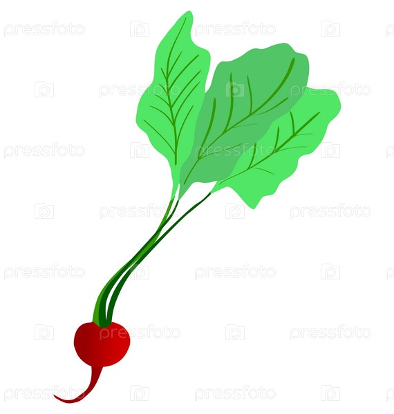 Редис с листьями, изолированный на белом фоне