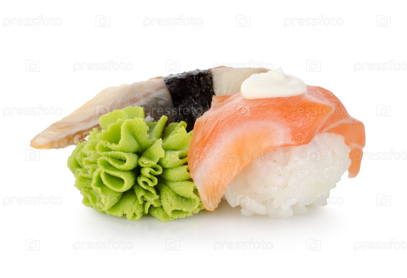 Суши и васаби на белом фоне