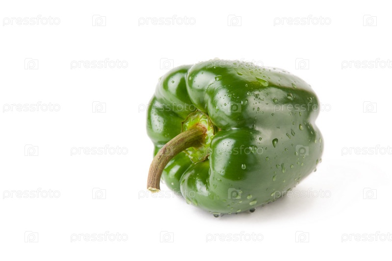 Мокрый зеленый болгарский перец на белом фоне