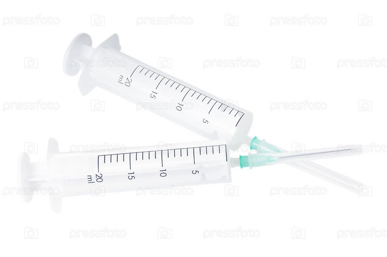 Два шприца на белом фоне