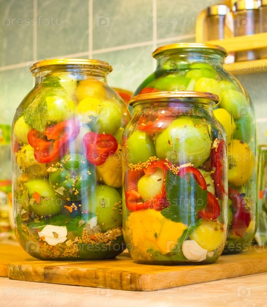 Консервированные овощи в банках на кухонном столе