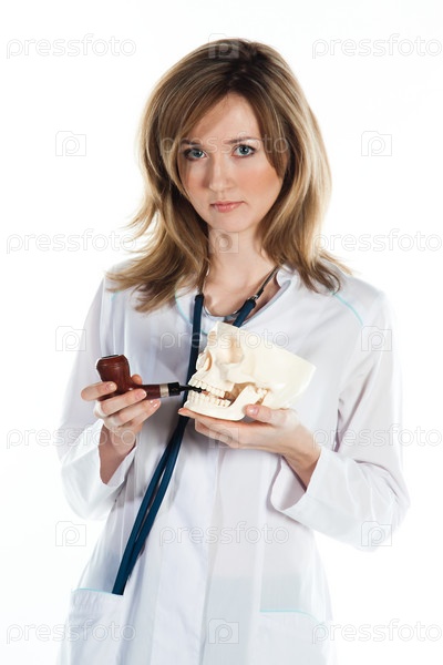 Портрет молодой и красивой женщины-врача на белом фоне