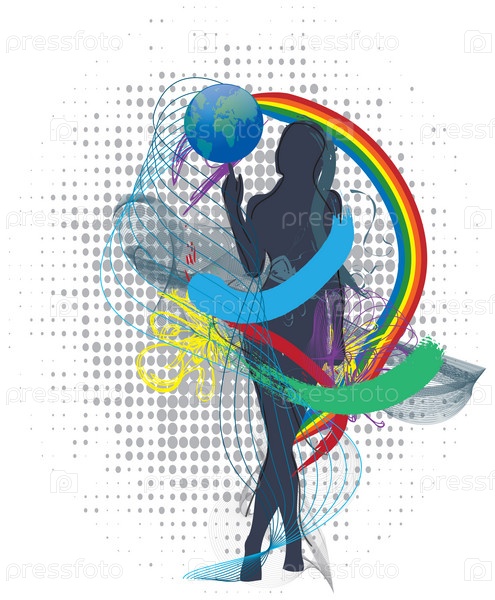 Абстрактная иллюстрация с глобусом и девушкой
