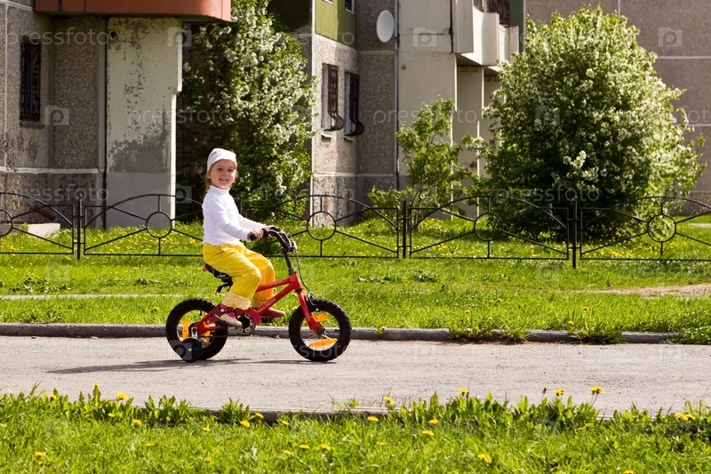Девочка катается на велосипеде