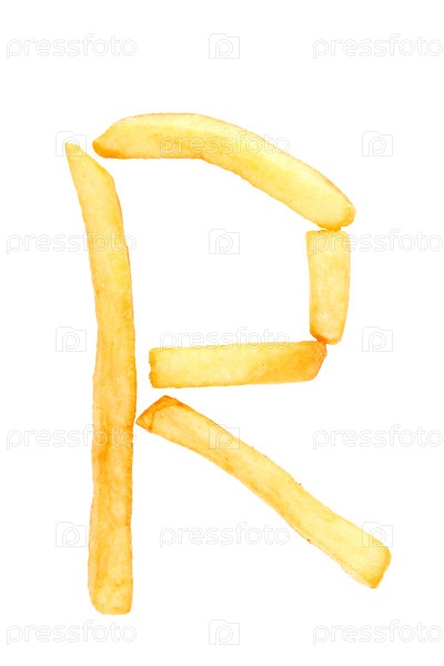 Нарисованная желтой краской буква английского алфавита на белом фоне