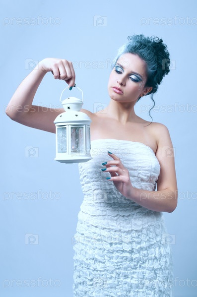 Красивая женщина с рождественским фонарем в руке