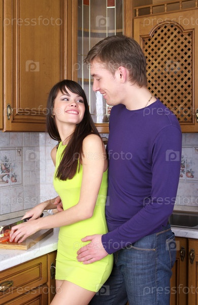 Молодая пара на кухне