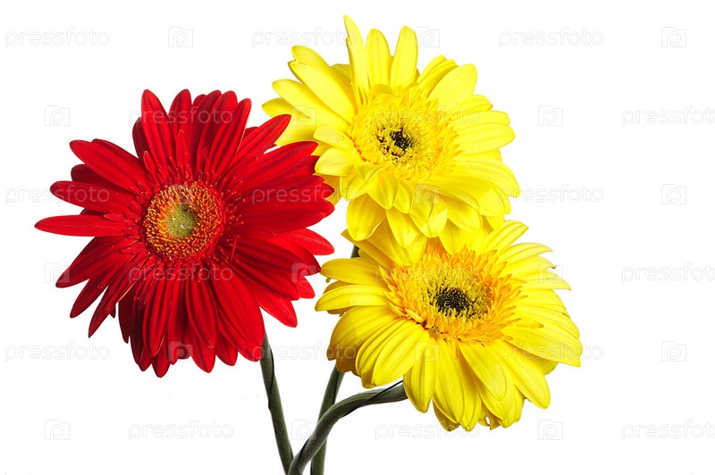 Три больших герберы на белом фоне