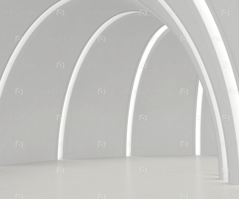 Пустой белый зал с округлыми стенами