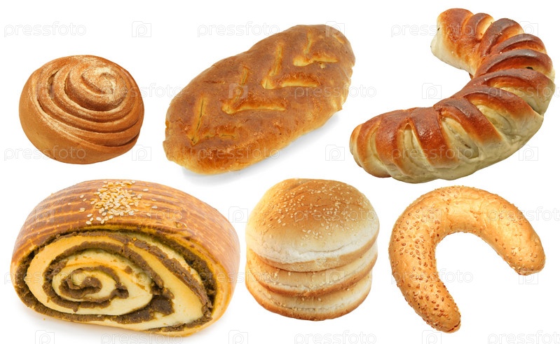 Набор хлебобулочных изделий на белом фоне