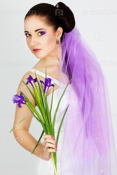 Невеста с букетом ирисов