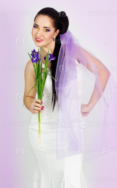 Невеста с букетом ирисов
