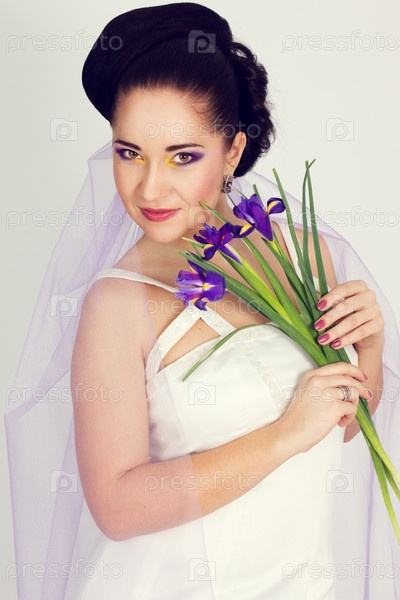 Невеста с букетом ирисов